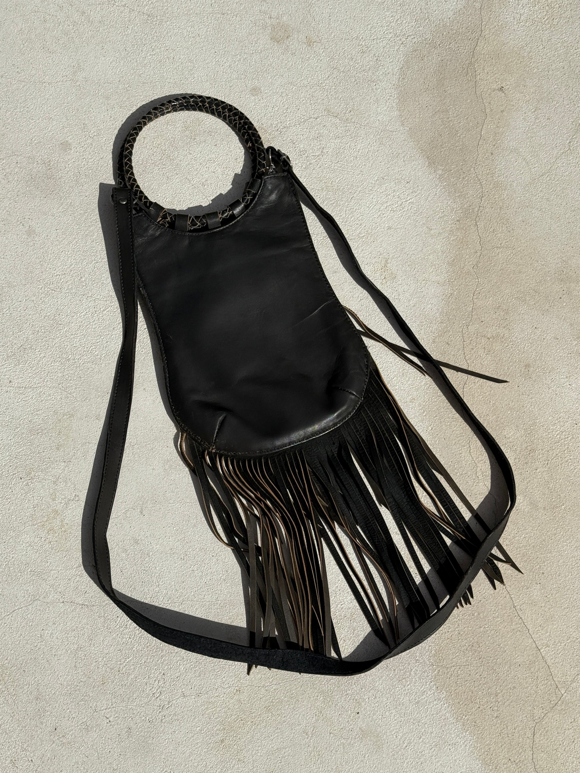 IMPERFECT SAMPLE Fringe Woven Purse in Black